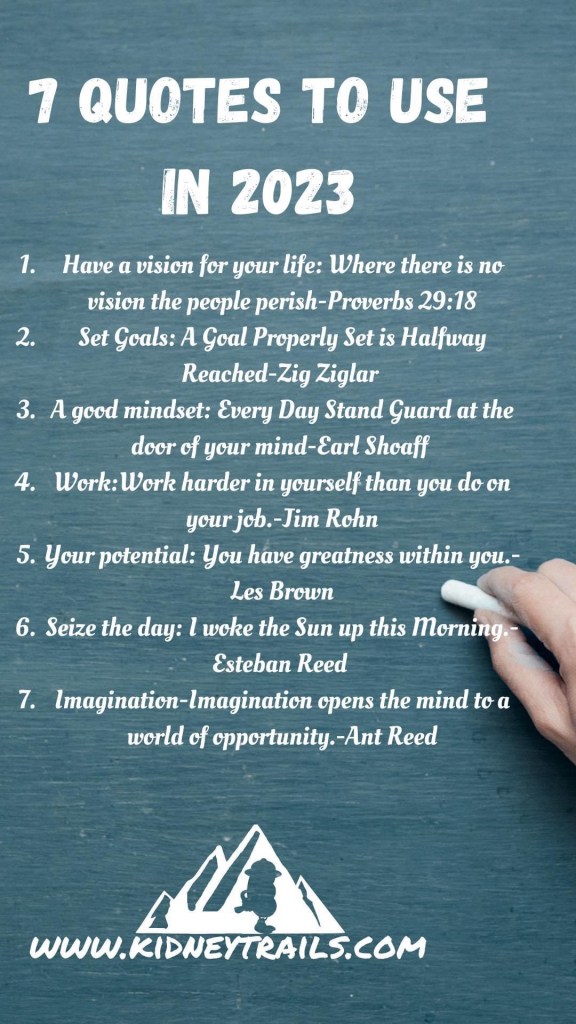 I want to share these quotes with you. These were put together by Kidney Trails CEO Mr. Reed. Learn more about Kidney Trails and get the inspiration you may need to make 2023 your best year yet.