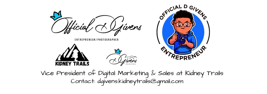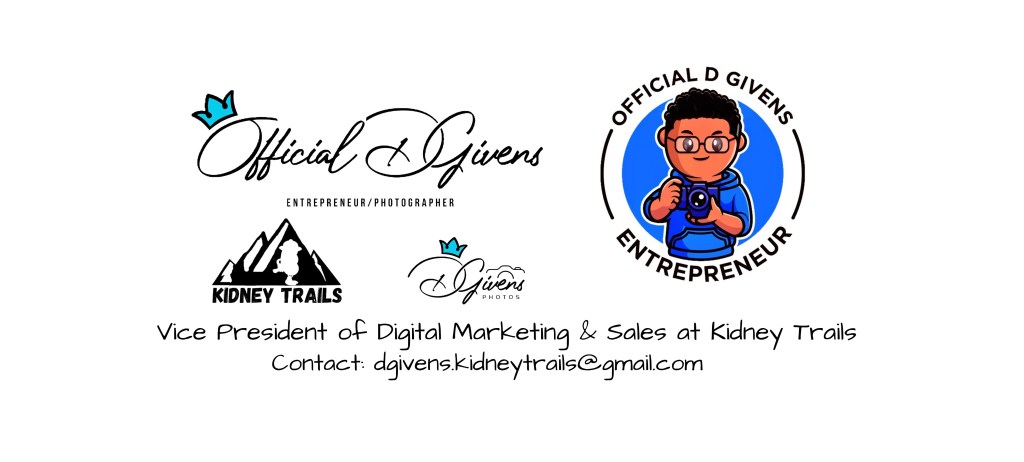 We’d love it if you followed us on Twitter, Facebook, Pinterest, LinkedIn and Instagram. We’d love your support. @officialdgivens and @kidneytrails
